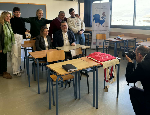 Η Ομάδα Επικοινωνίας, με την κ Τσακαρέστου, τον Κωστή Καπόπουλο, και τον Γιάννη Σουλιώτη. Συντονίζει ο κ Κουτσοκώστας, φιλόλογος της Σχολής μας.
