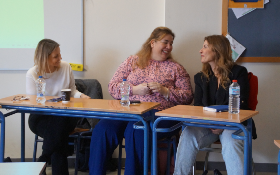 Η ομάδα της Ψυχολογίας με την Έλενα Σουκάκου, την κ Κορολή και την Νατάλια Χουλιάρα. Συντονίζει η κ Δούκα – δεν φαίνεται – Φιλόλογος της Σχολής μας.